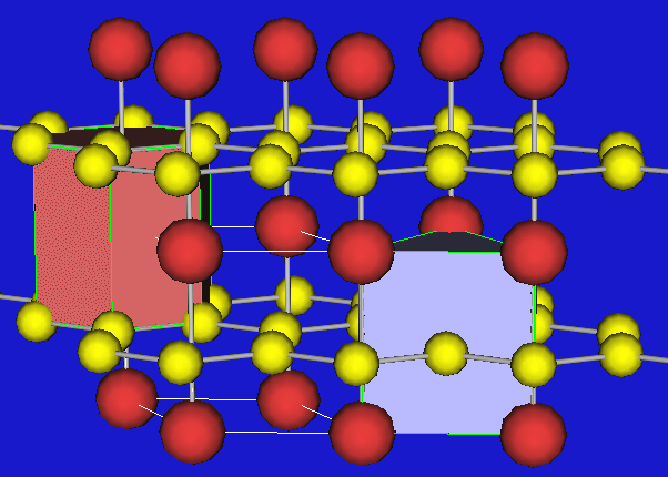 Oberhalb und unterhalb eines jeden Sechseckzentrums befindet sich ein