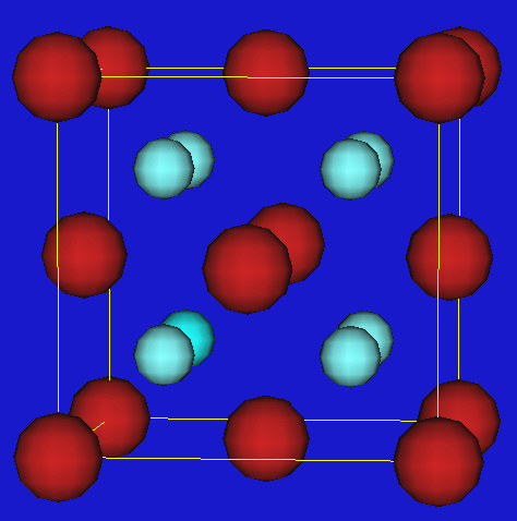 Das Teilgitter der Fluoridionen ist kubisch primitiv. Im Zentrum jedes