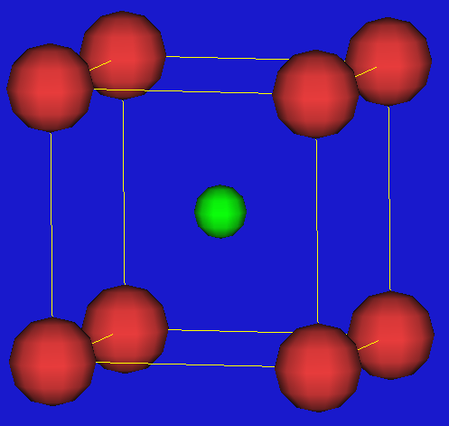 Die Caesium-Ionen sind von acht Chlorid-Ionen in Form eines Würfels