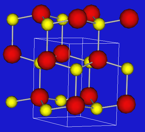 von vier S-Atomen in Form eines Tetraeders umgeben (und umgekehrt) (CN=4:4).