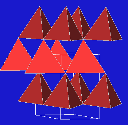 je zwei dieser Atome ein O-Atom ein, so erhät man die Struktur des Tridymits.