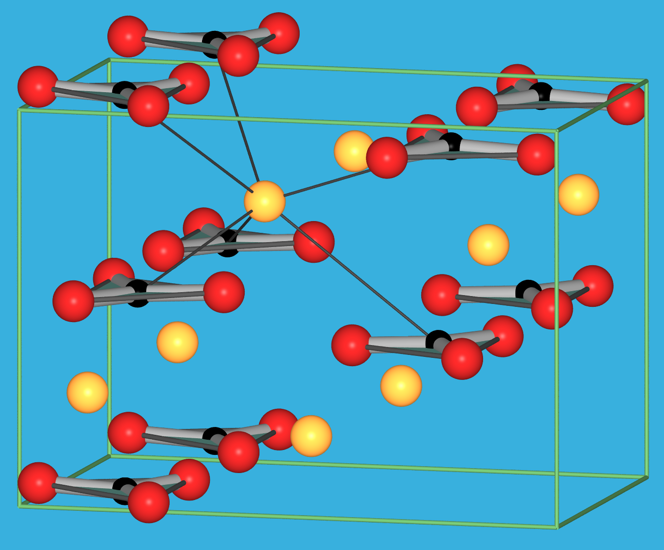Die Carbonatgruppen sind oktaedrisch von sechs Calciumionen umgeben (CN=6:6)