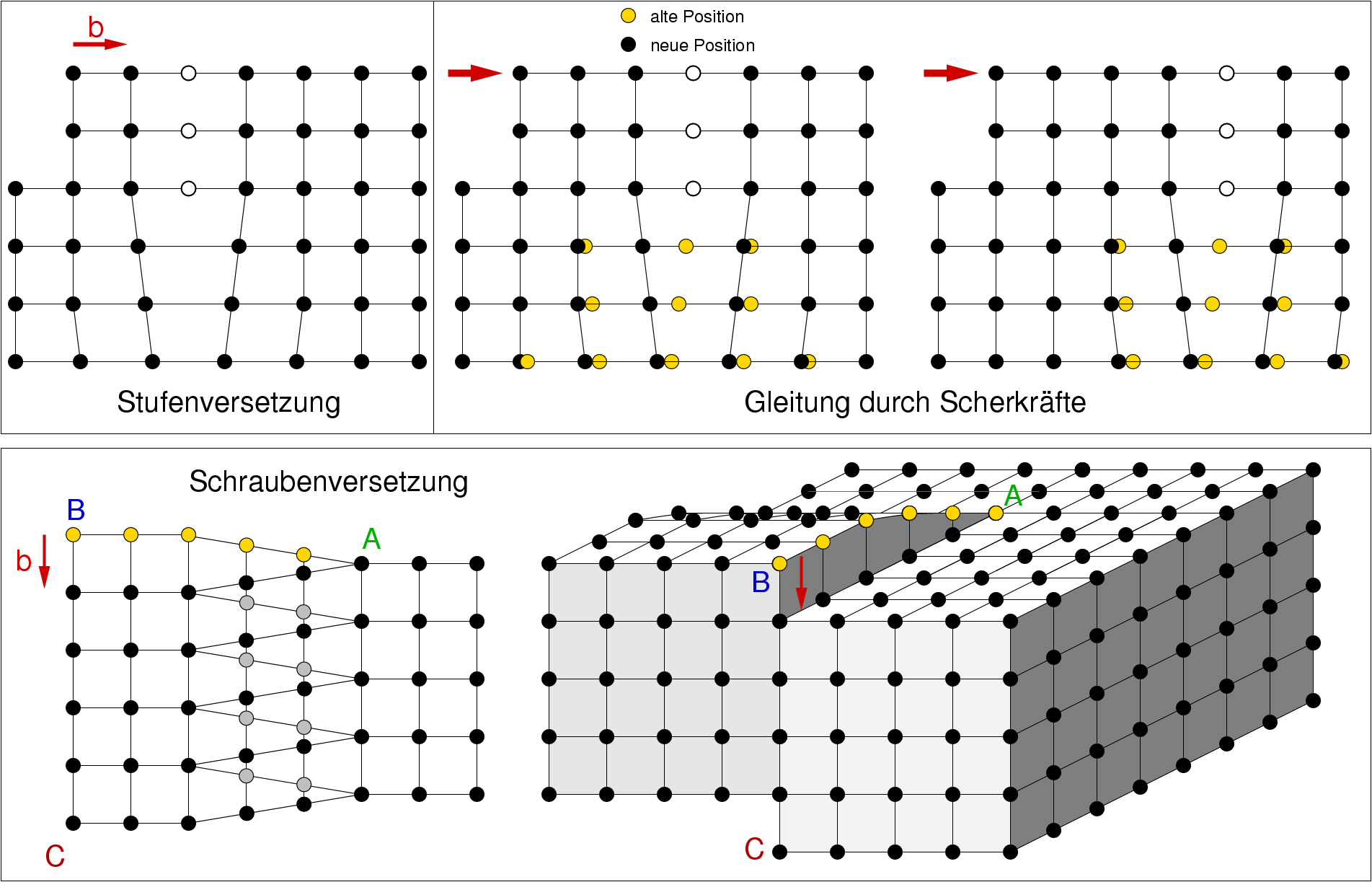 | Abb. 1.2.2. Prinzip einer Stufen- und Schraubenversetzung; Burgers-Vektor ‣ SVG |