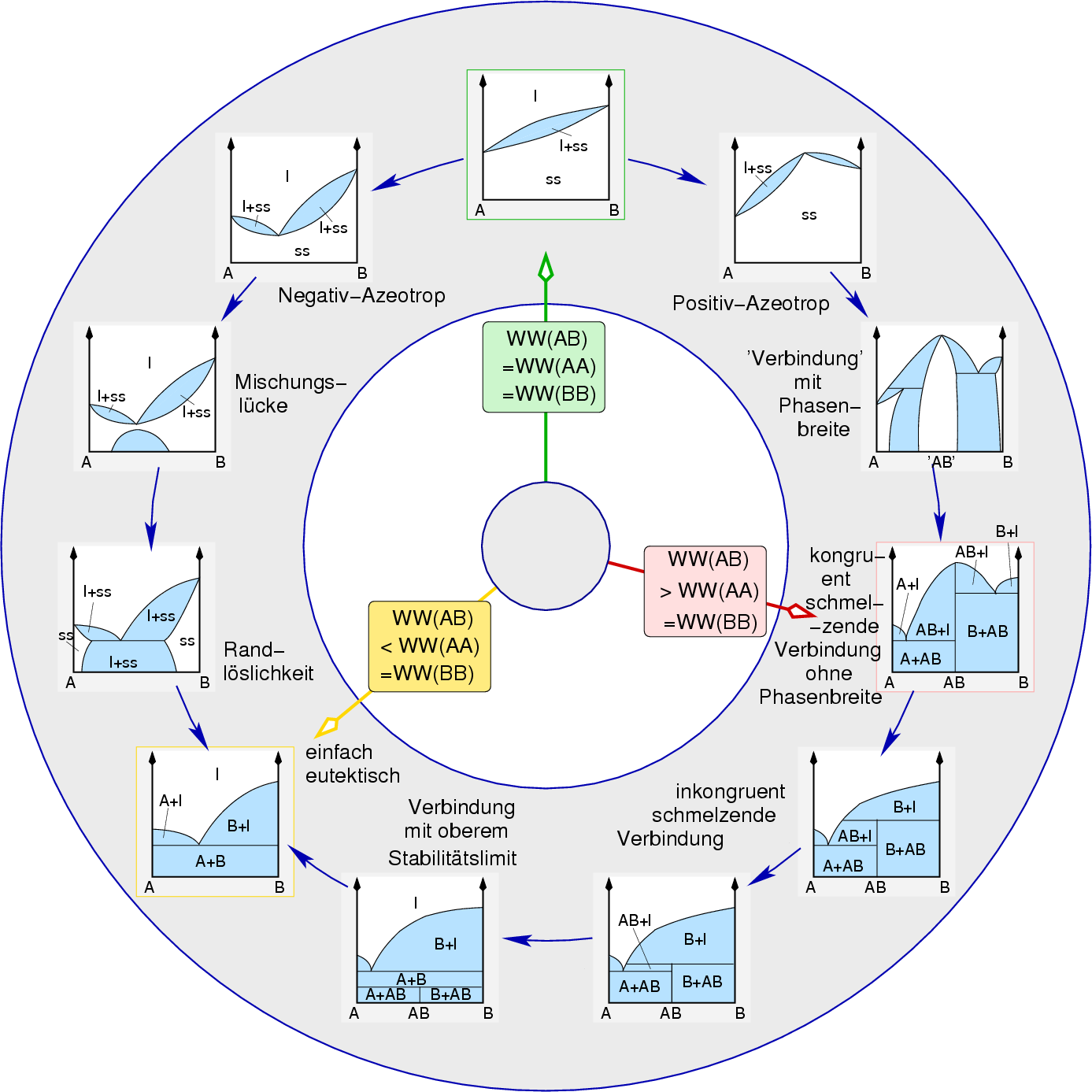 | Abb. 2.1.1. Phasendiagramme zweikomponentiger Systeme ‣ SVG und Erklärung, aus dem Sn-Vortrag der AC-III-Vorlesung |