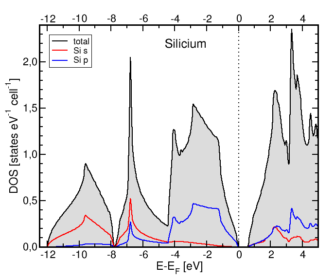 | Abb. 2.6.1. Zustandsdichte von Silicium (GGA-DFT-Rechnung, die