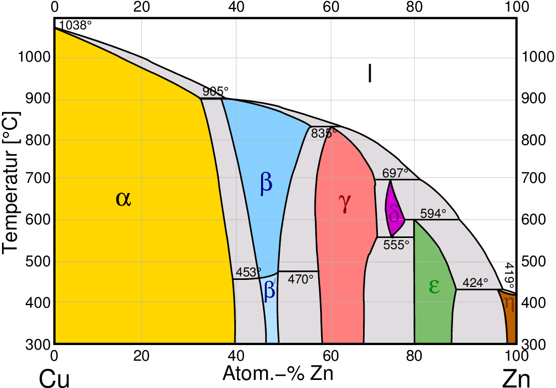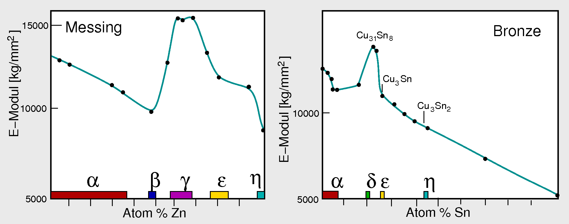 | Abb. 4.4.1. Phasendiagramme von Messing (links) und Bronze (rechts) | |