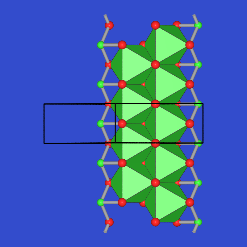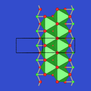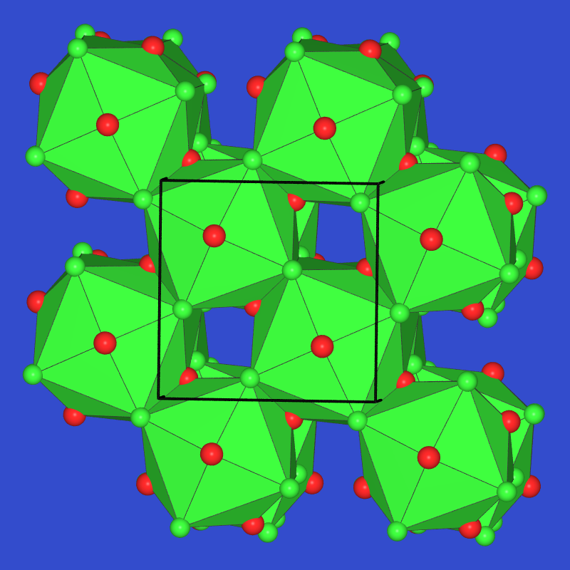 über deren Flächen Se-Atome lokalisiert sind (gr"une Polyeder).