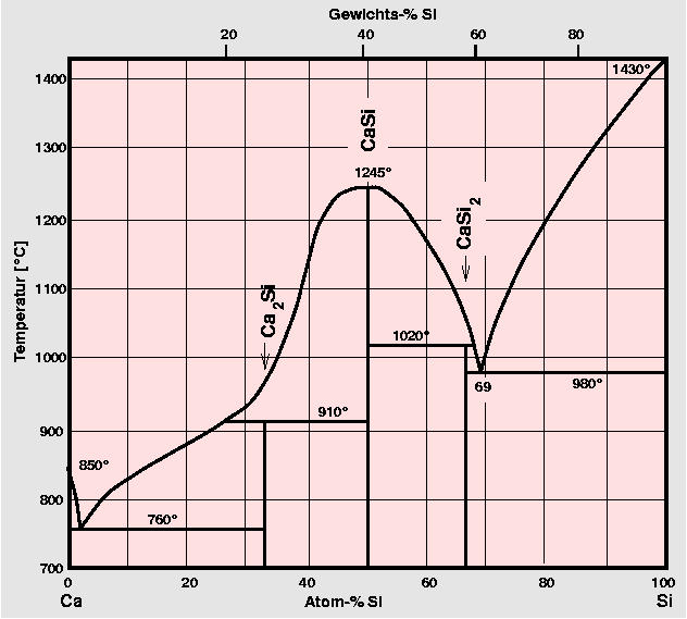 meist recht hoch. Als Beispiel ist oben rechts das Phasendiagramm Ca-Si angegeben.