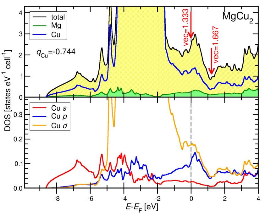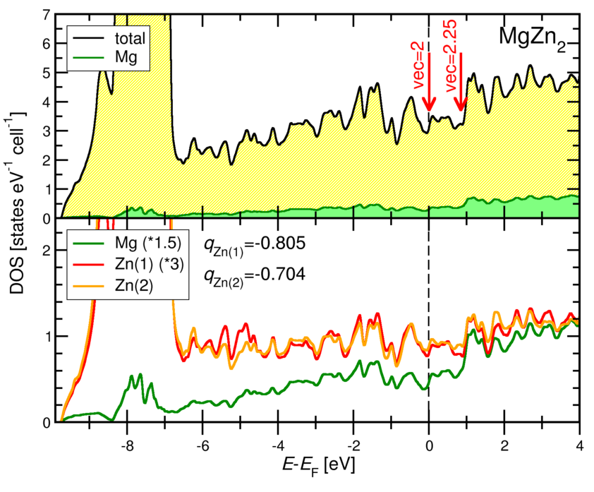 Die berechneten Zustandsdichten der beiden Mutterverbindungen MgCu2 und MgZn2 (Abb. 7.2.8.)