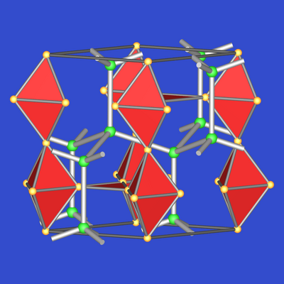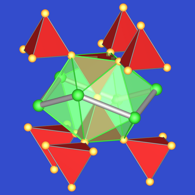von 4-fach überkappten gekappten Tetraedern (12 Cu-Atome) und 4 weiteren Mg-Atomen: