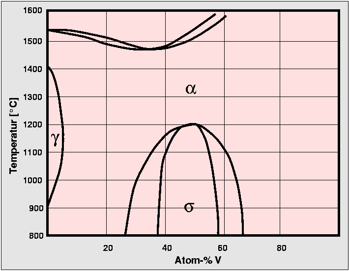 Als Beispiel für die Stabilitätsbereiche und Phasenbreiten von σ-Phasen