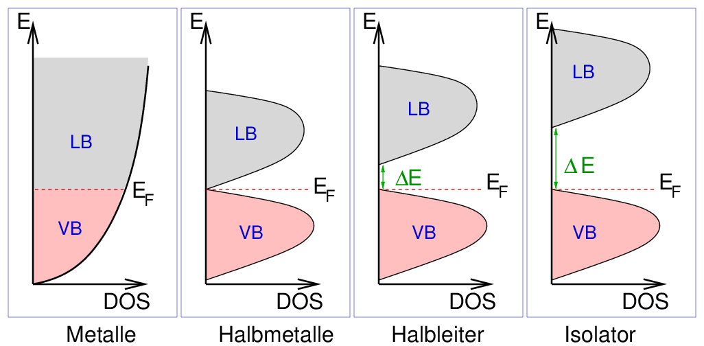 energetischen Abstand zwischen Valenzband und Leitungsband. Danach lassen sich