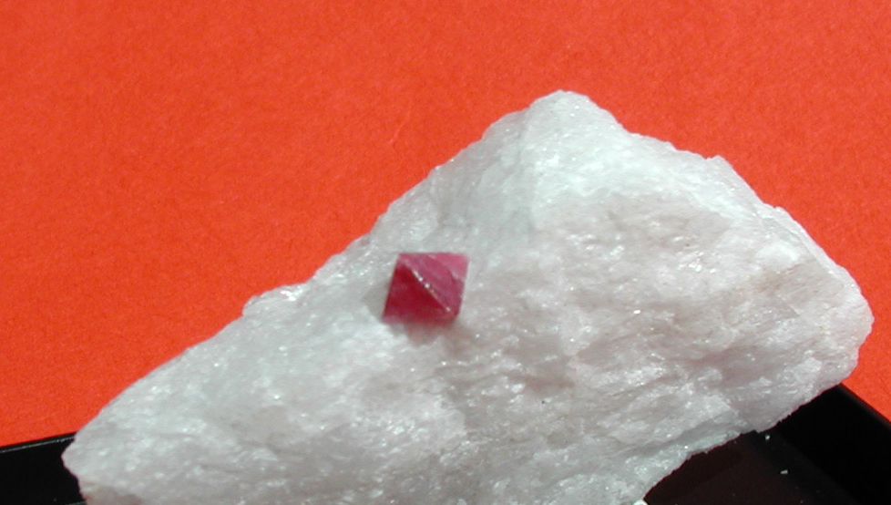 | Abb. 3.1.2. Spinell (links, das kleine rote Oktaeder!)