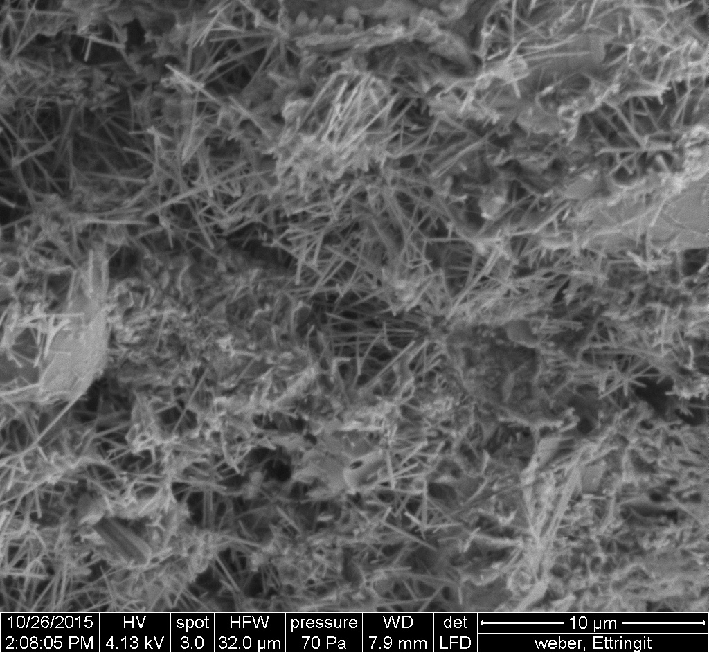 nadelförmiger Sulfat/Aluminate, Ettringite, s. Abb. 3.8.5. links) und das
