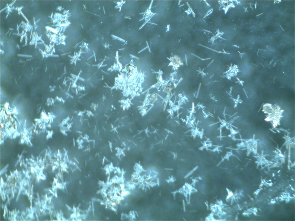 wobei die Nadeln wachsen und die Masse sich verfestigt.