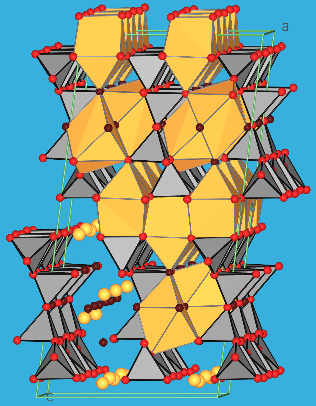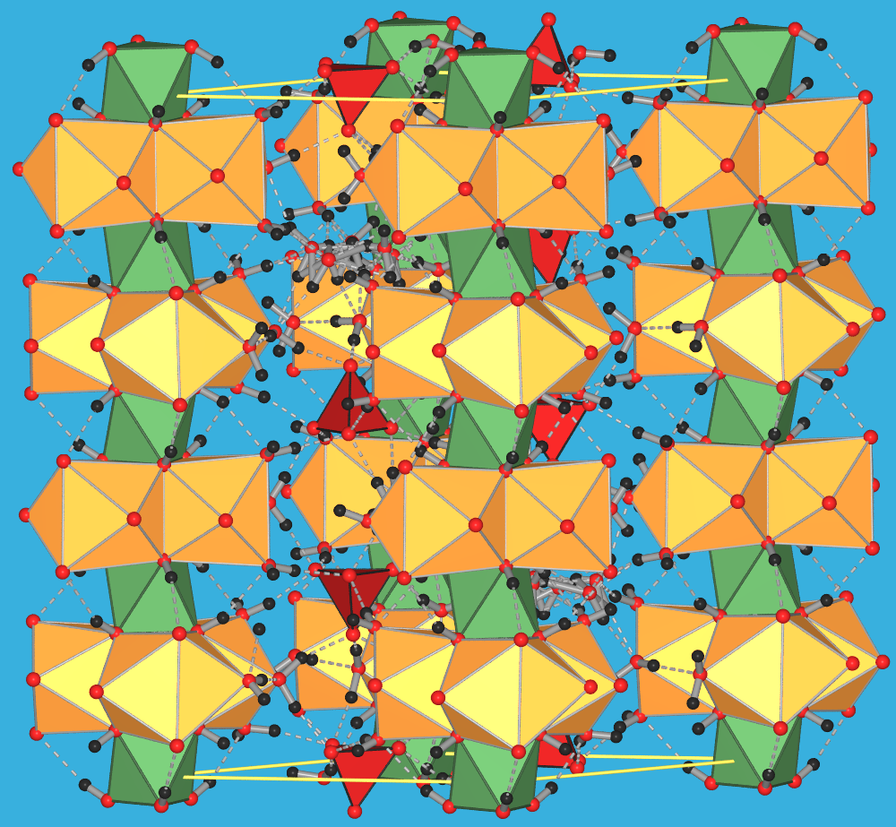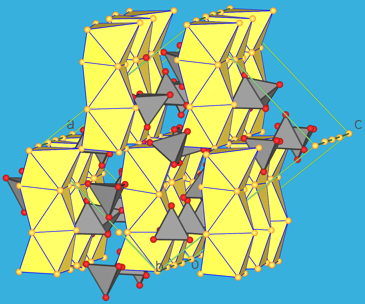 gelbe Polyeder: Ca2+-Koordinationspolyeder;
