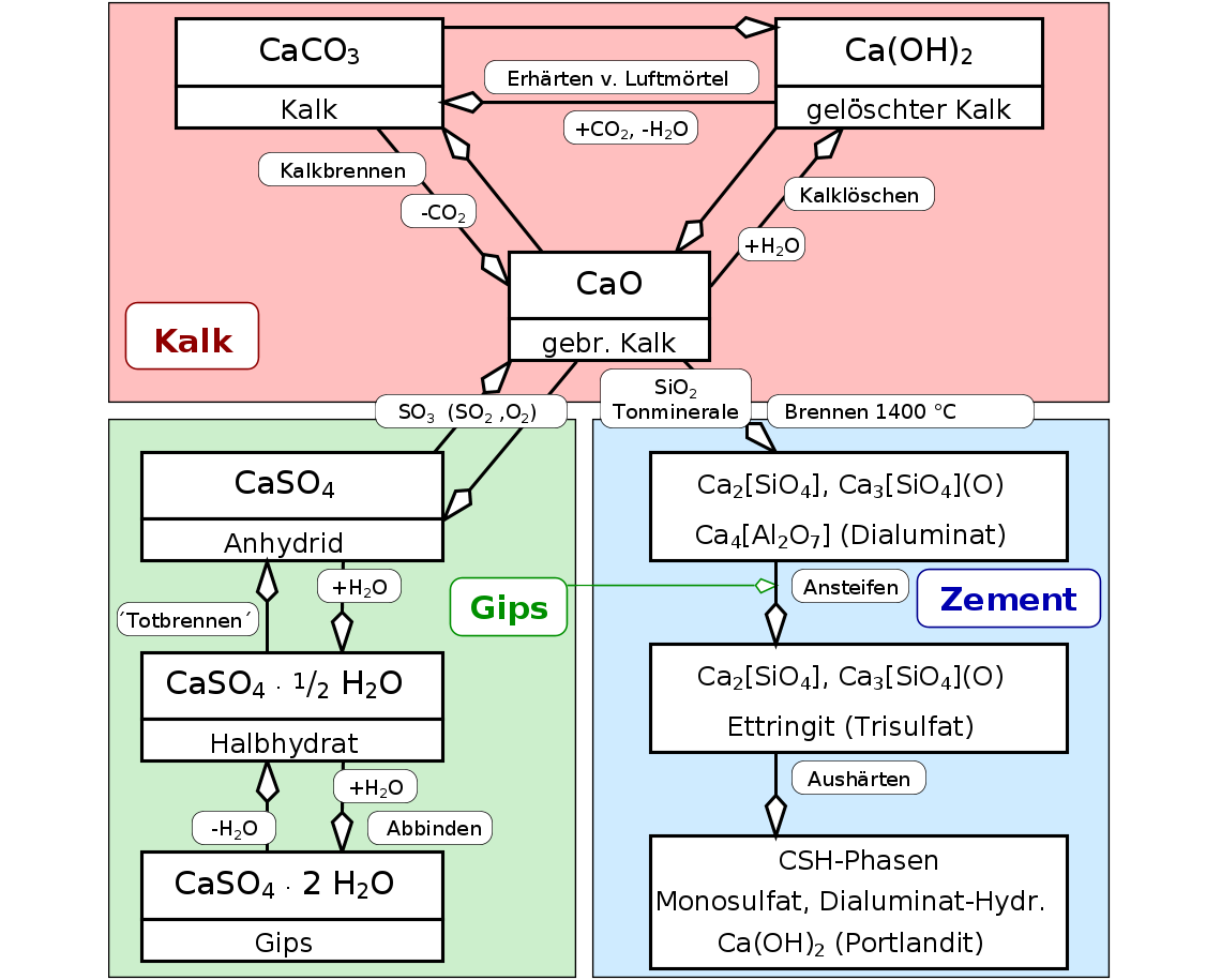 - Direkt nach dem Anteigen des Zements mit Gips und Wasser hydrolysieren vor allem die