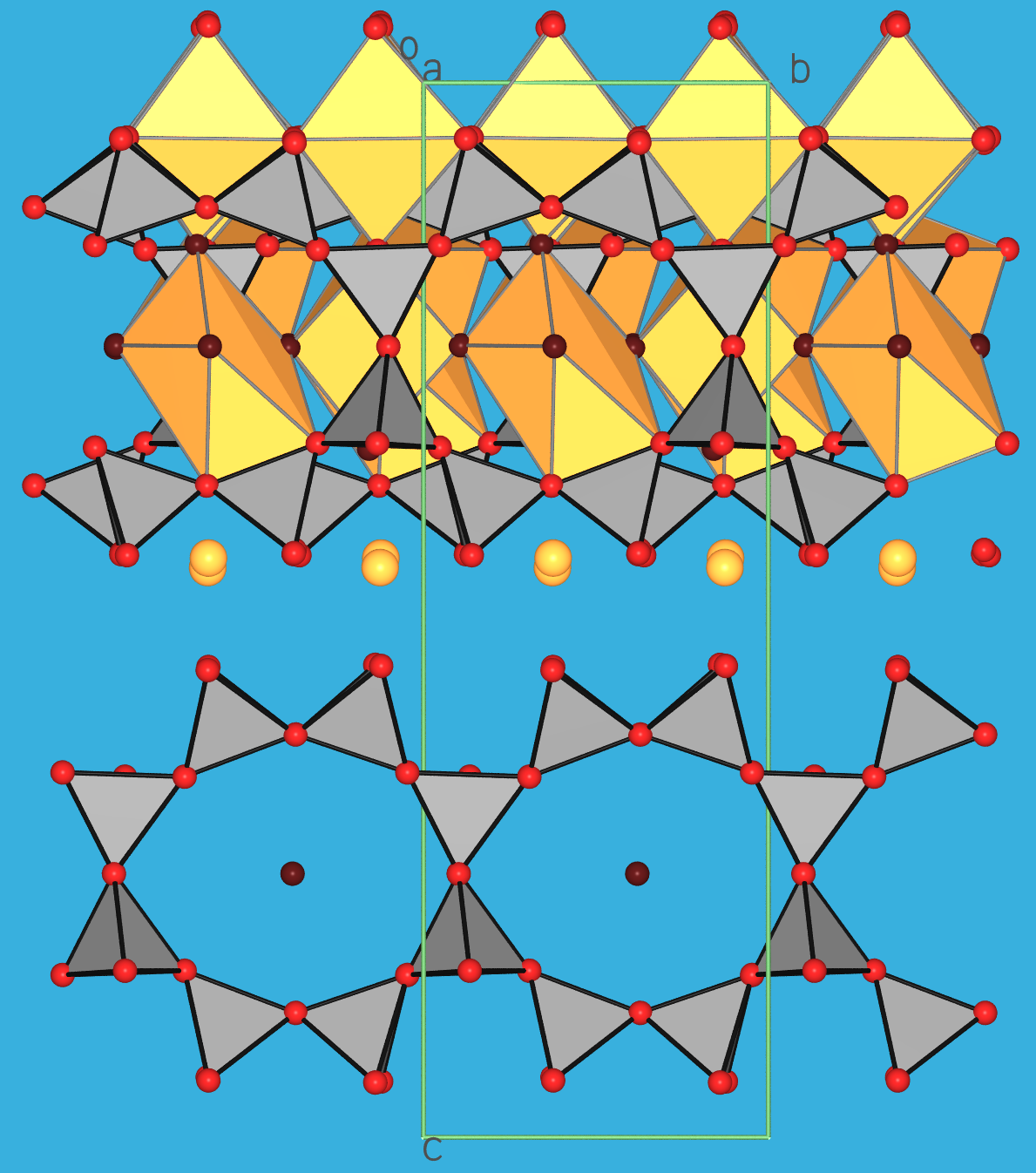 gelbe Polyeder (bei Alit): Ca-Koordinationspolyeder um die isolierten Oxid-Ionen).