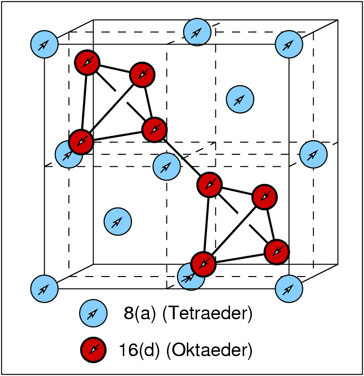 In der Spinell-Struktur (s. Abb. 4.4.6.) bilden die Oxid-Ionen eine kubisch dichteste Kugelpackung (f.c.c.), in der