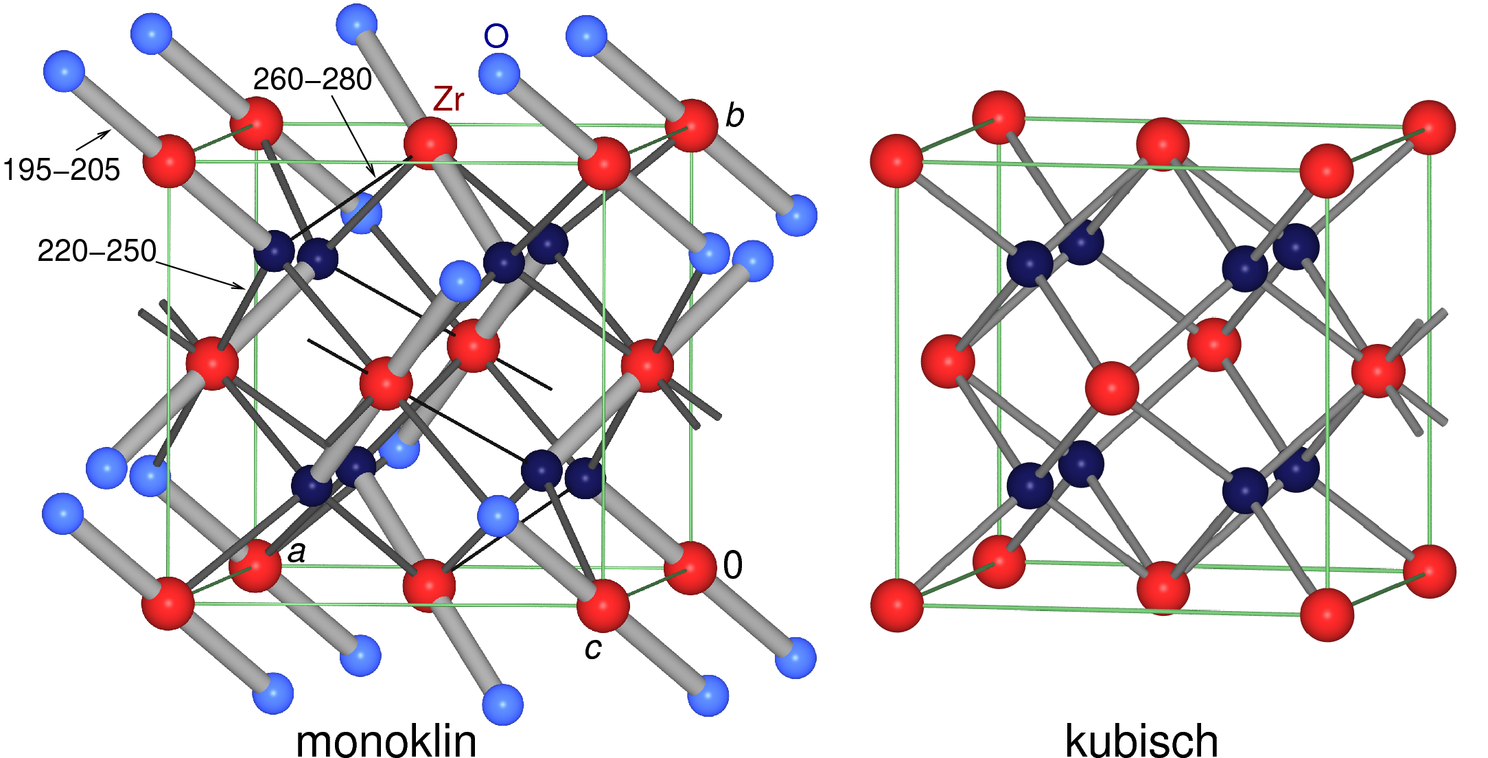 Mit CaO oder Y2O3 kann die kubische Form von ZrO2 (CaF2-Struktur)