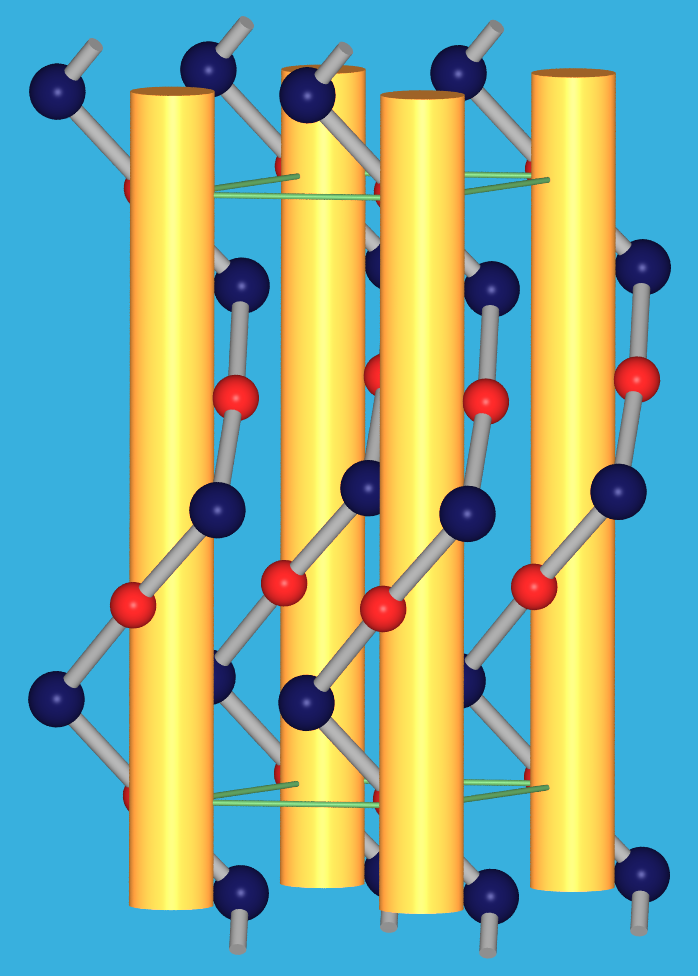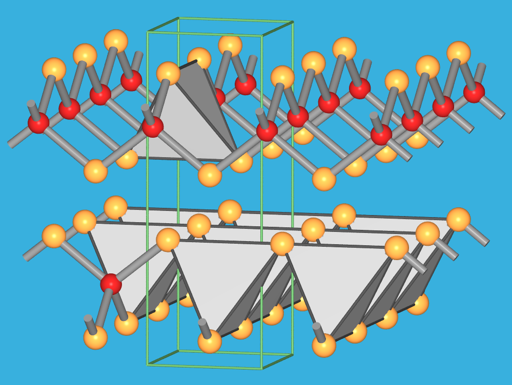 kristallisiert isotyp zum Zinnober (rote Form von HgS) und enthält die Ketten in geschraubter Anordnung (Abb. 9.2.7 rechts).