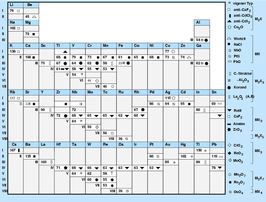 - Die Oxide MO kristallisieren fast alle im NaCl-Typ (Besetzung