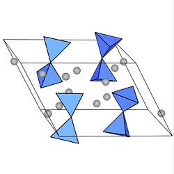 Die isolierten [SiO4]4--Tetraeder sind hier blau, die