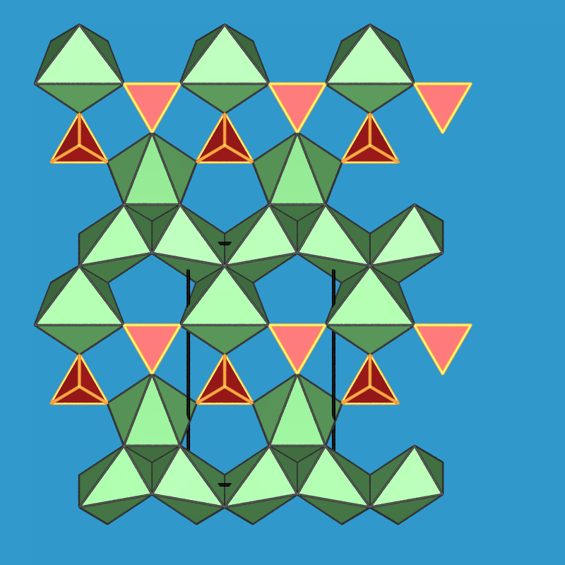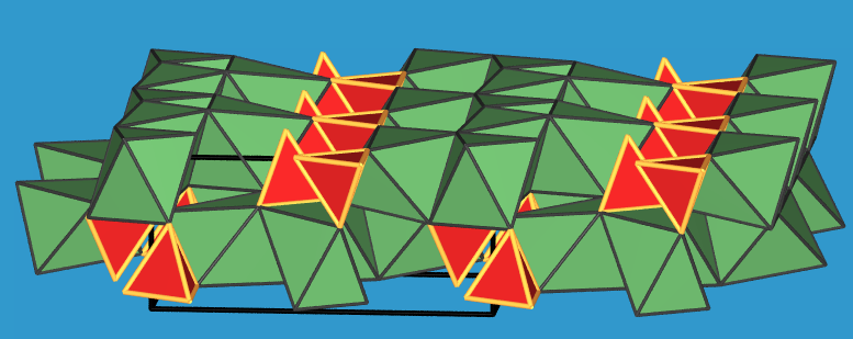 Im Clinohumit sind nur noch vier benachbarte Tetraeder zu finden, im Humit