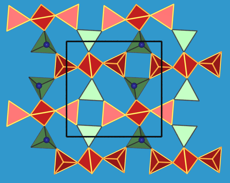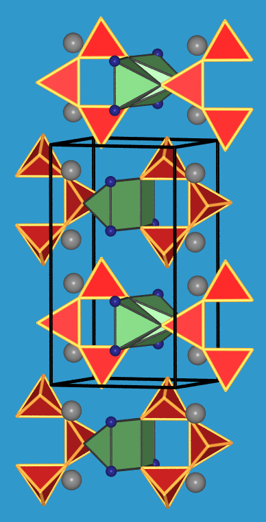 | Die Trisilicate enthalten als gemeinsames Bauelement das Anion [Si3O10]8-. Das O:Si-Verhältnis beträgt damit 3.33. Insgesamt sind sie nicht sehr häufig. |