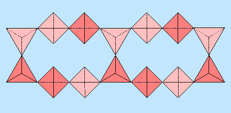 | Silicatdoppelband mit Oktaedern (in 3 Ansichten) |