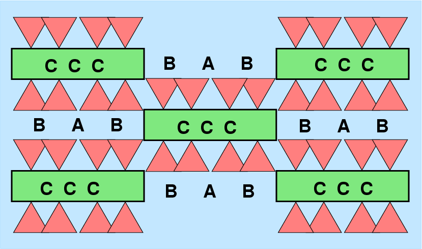 verbleiben zwischen den Bändern Lücken für die Kationen A und B