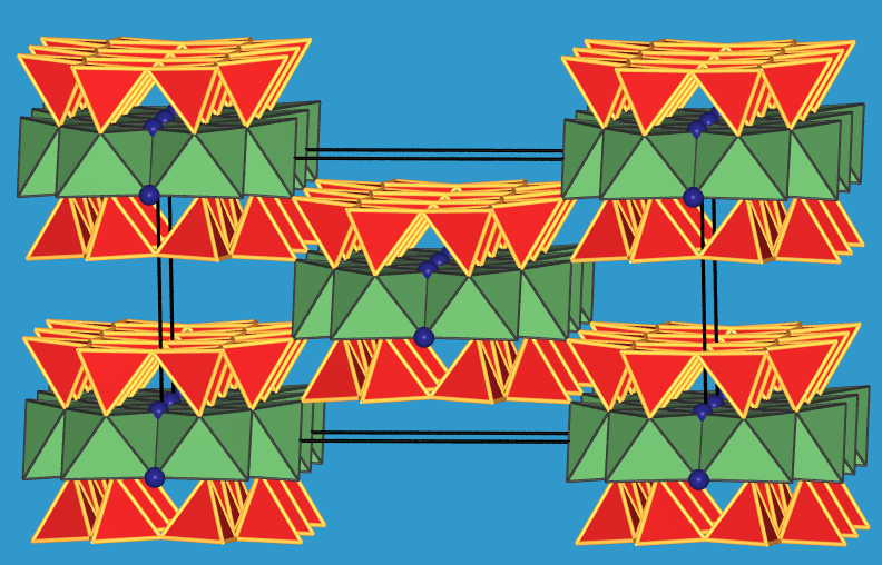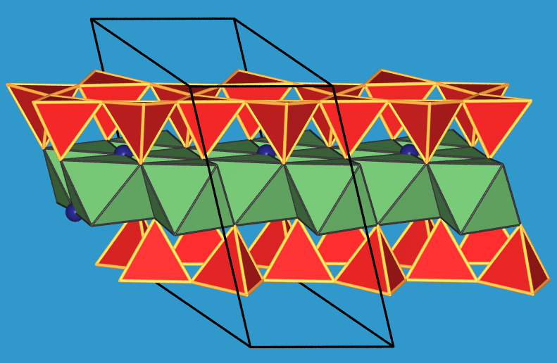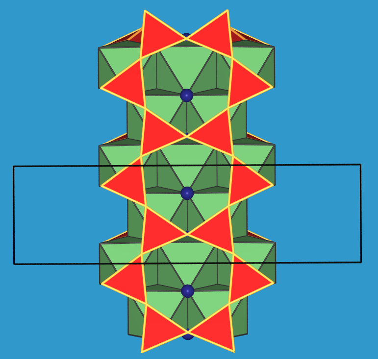 In der Struktur weisen die Tetraeder der Doppelkette alle in eine Richtung.