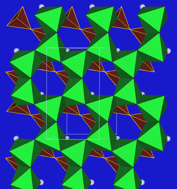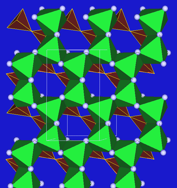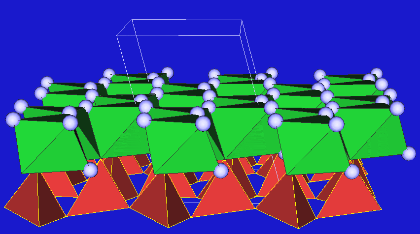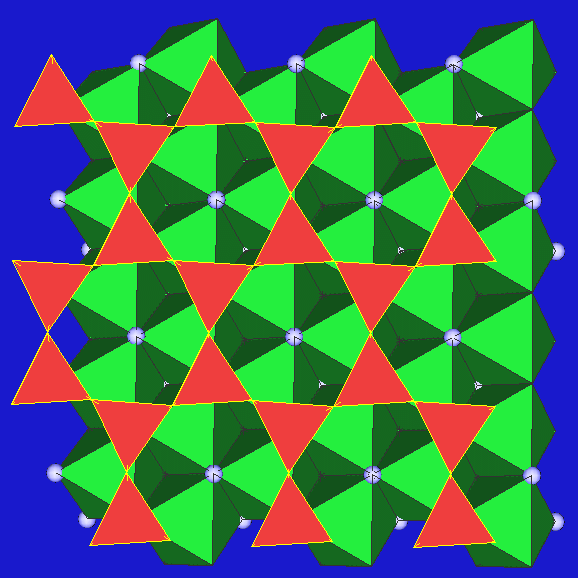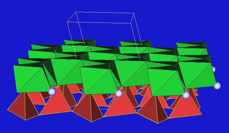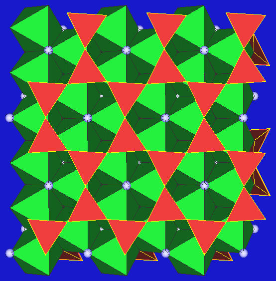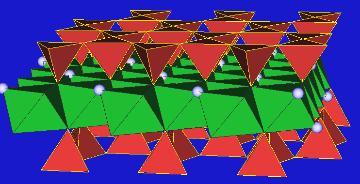 - weitere O- bzw. OH-Atome (blau) in diese Lücken eingebaut, so dass sie