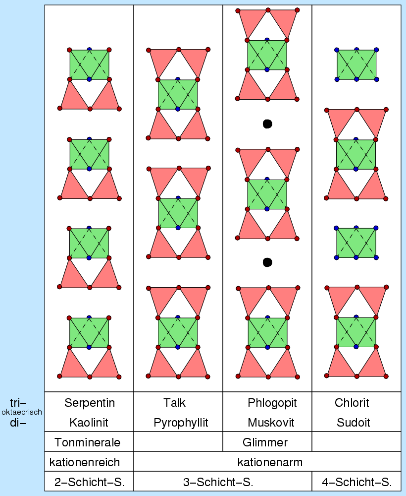 - Kationenreiche Schichtsilicate (Zweischichtsilicate mit