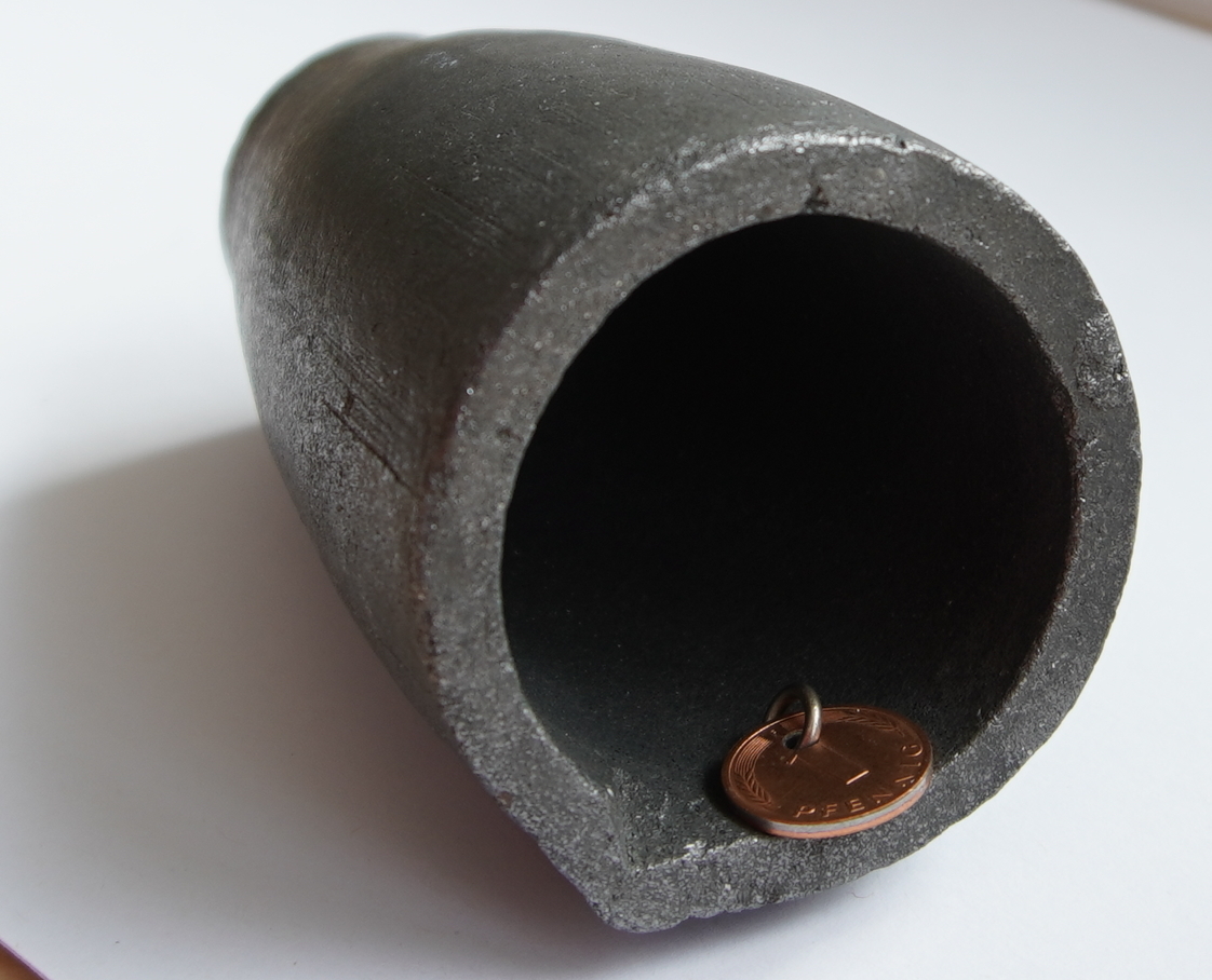 | Abb. 2.2.5.3. winzige Kristalle von natürlichem Graphit (links) und ein Graphit-Tiegel (rechts). | |