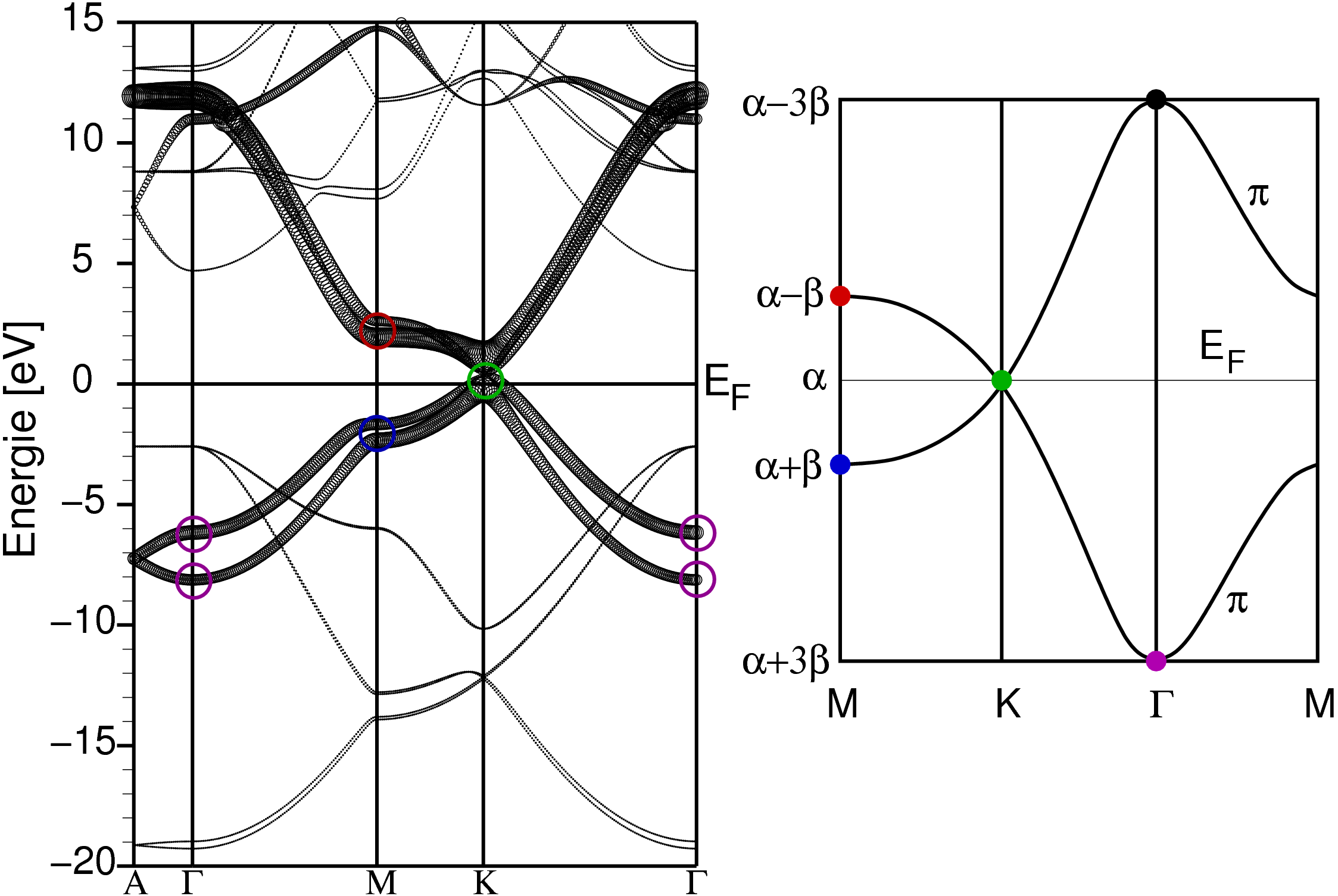 | Abb. 2.2.5.4. Banstruktur von Graphit (pz-Fatband-Plot) ‣SVG |