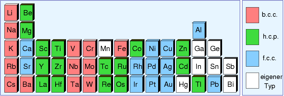 - Fast alle Metalle kristallisieren in einem der drei obengenannten Strukturtypen.